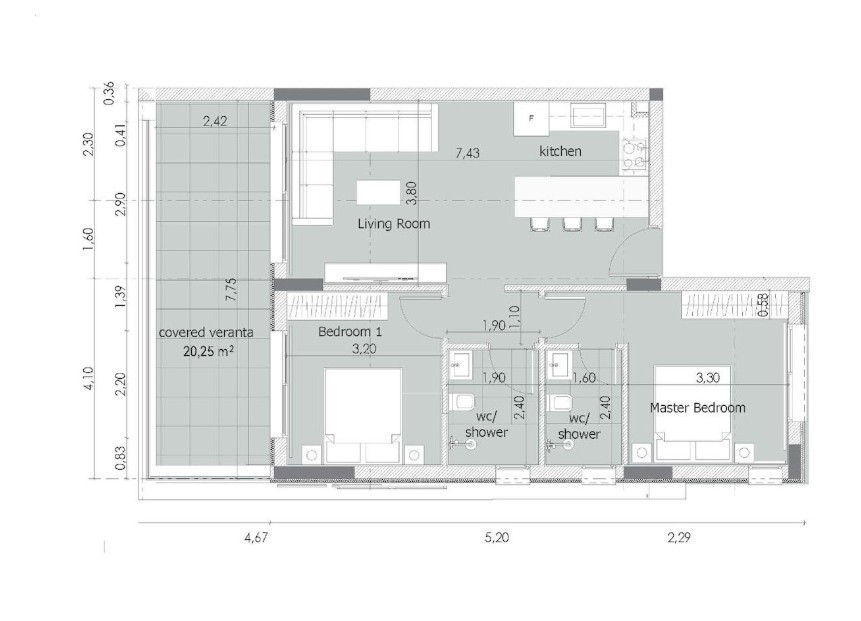 • Covered Area: 95 m2