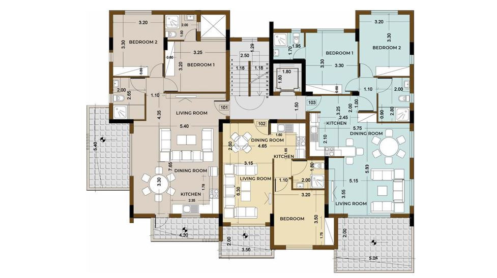 • Covered Area: 105 m2