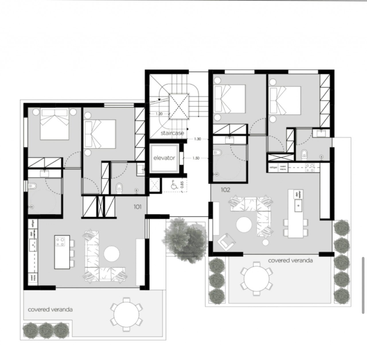 • Covered Area: 105 m2