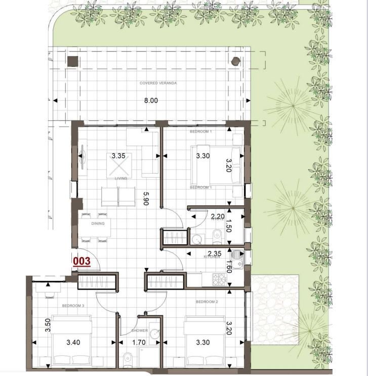 • Covered Area: 108 m2