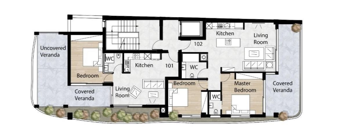 • Covered Area: 105 m2