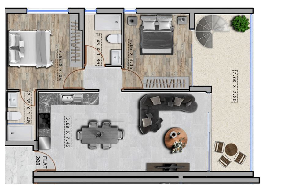 • Covered Area: 116 m2