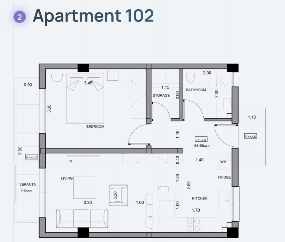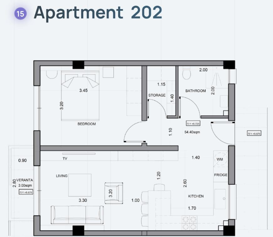 • Covered Area: 61 m2