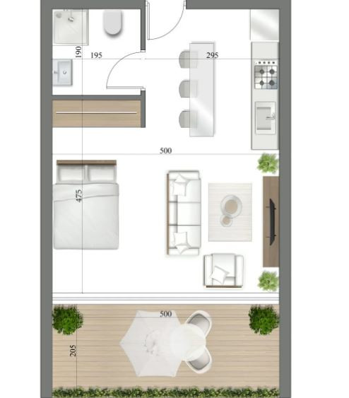 • Covered Area: 45 m2
